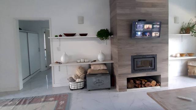 Casa de 77m2 sobre lote 1700m2, distribuida en una sola planta, con espacios amplios. Cocina completa con isla y barra integrada, moderno hogar a leña , gran dormitorio y baño en suite con vestidor.