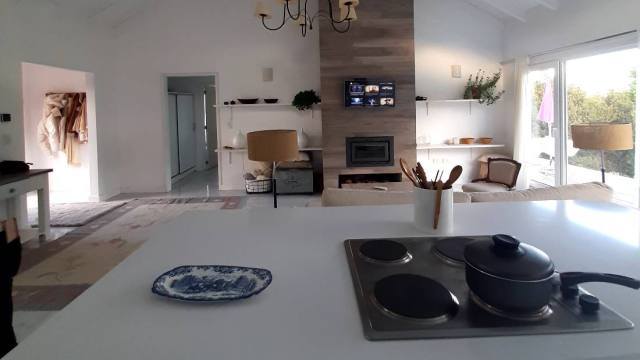 Casa de 77m2 sobre lote 1700m2, distribuida en una sola planta, con espacios amplios. Cocina completa con isla y barra integrada, moderno hogar a leña , gran dormitorio y baño en suite con vestidor.